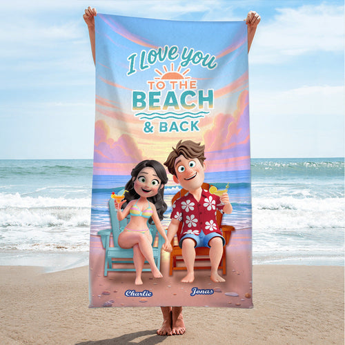 I Love You to the Beach & Back - Personalized Summer Couple Beach Towel