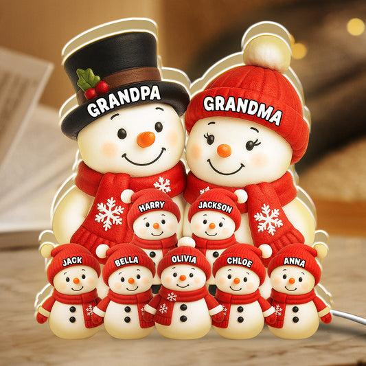 Personalized Christmas Snowman Family Light Box for Grandparents - Holiday Decoration