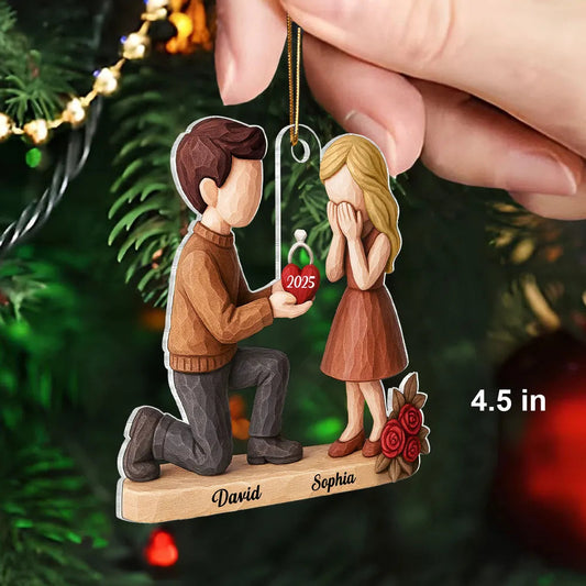 Personalized Engagement Ornament for Couples - Romantic Christmas Proposal Keepsake