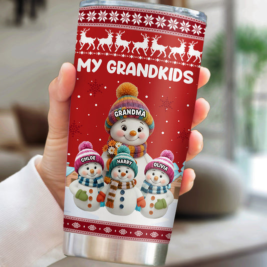 Personalized Christmas Tumbler for Grandma - Snowman Family Design