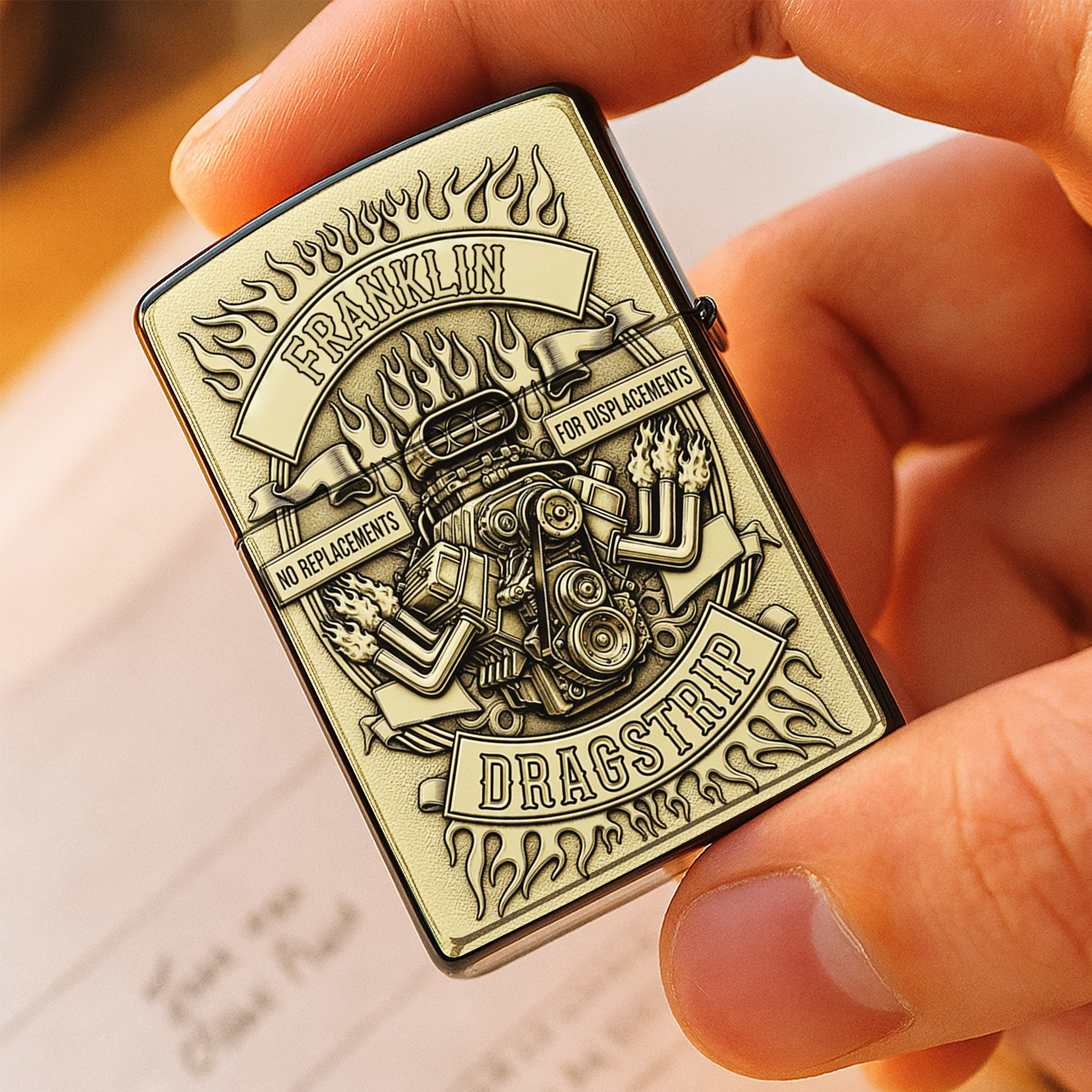 Ignite Passion: Drag Racing Engine Lighter - Personalized Gift for Hot Rod Lovers